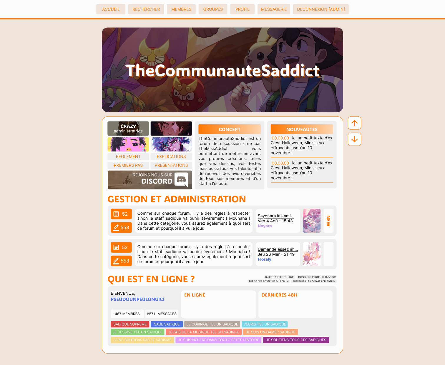 Commande de design réalisée suite à une demande, la maquette du forum "TheCommunauteSaddict" est l'un des projets les plus frais qu'il m'a été de faire et qui, pour une fois, n'est pas entièrement créé pour moi-même.